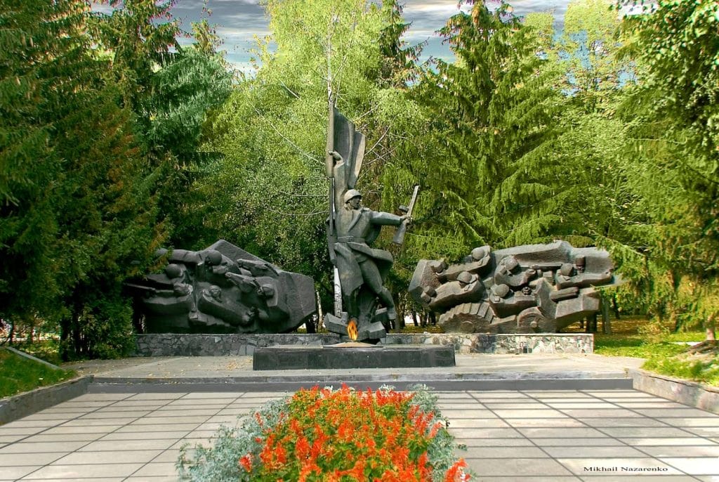 The buildings of the male and female grammar schools, merchant Maslennikov’s commercial premises (an old department store), the town council premises, and Savych house have survived.Next to the Holy Spirit Church there is a memorial complex where the dead soldiers who liberated Bohodukhiv during the Second World War are buried. The complex includes, in particular, a mass grave where 258 soldiers are buried, a monument to soldiers that were local residents.After the beginning of the russian-Ukrainian war, a Cossack Cross memorial was installed in the town park; later a new memorial was opened next to it – a Memorial Alley in honour of the fallen soldiers – compatriots who defended the Motherland from the first days of the war.