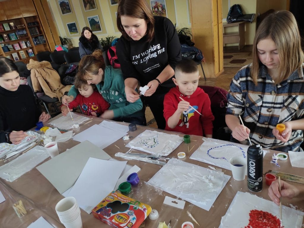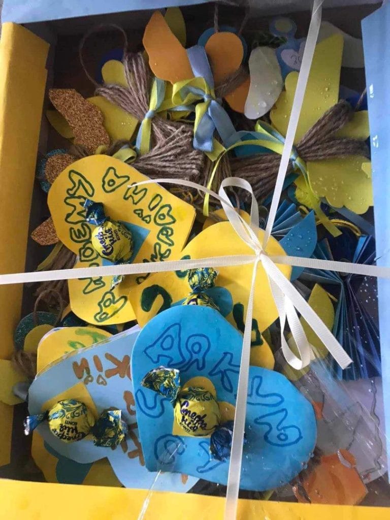 Residents of the community weave camouflage nets for the military, conduct Easter and Christmas volunteer actions. Children draw pictures, weave rosaries with their own hands and hand them over to the military.