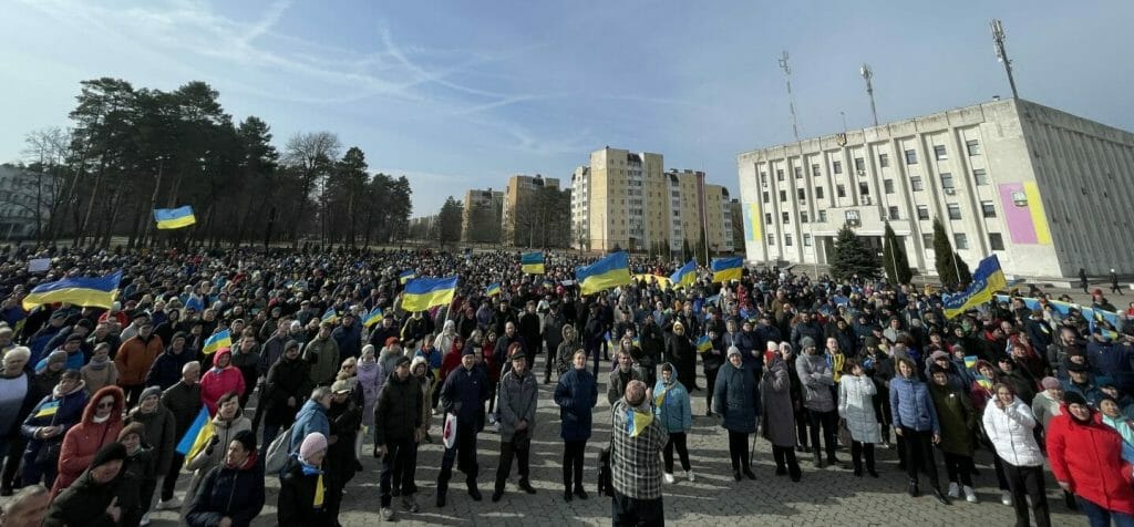 Unfortunately, however, the forces were unequal, and on March 26, after fighting on the outskirts of the town, the invaders entered Slavutych, captured the mayor, searched people for weapons, looted the town’s infrastructure, damaged municipal and private property etc. On the same day, more than 7,000 Slavutych residents came out for a peaceful protest against the Russian occupation.The occupiers tried to stop the brave and peaceful demonstrators with automatic shots and stun grenades, but the residents of our town did not get scared, refused to give up and continued to loudly express their pro-Ukrainian position.The community suffered losses – four defenders died in battles on the outskirts of the town. One person was seriously injured during a peaceful anti-occupation protest.